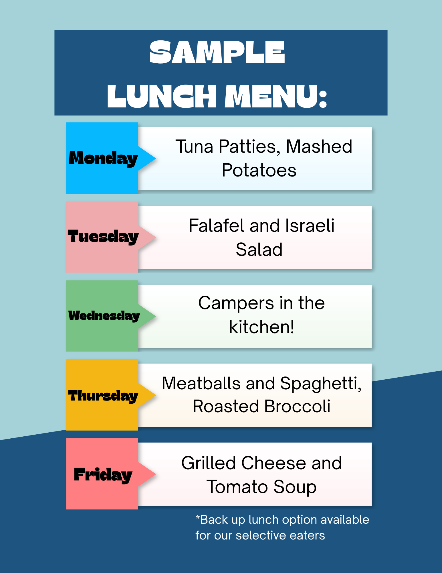 Camp Gan Izzy is committed to healthy eating and balanced meals. The food that is served is nourishing, fresh and hot. Children learn from a young age that healthy eating is important and we are proud to be part of this wonderful journey of healthy eating. Lunch has a variety of delicious veggies, protein and grains.